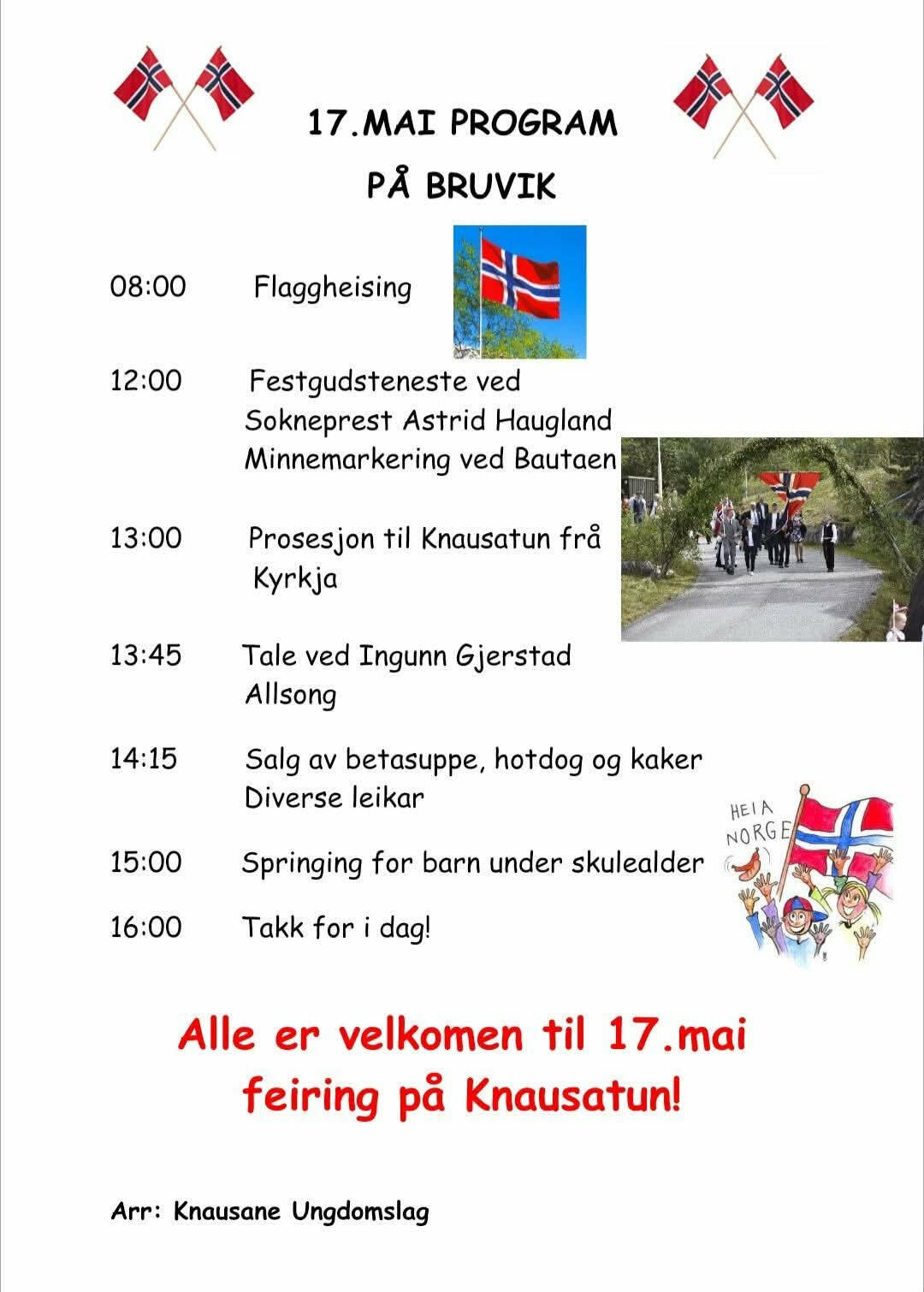 Program for dagen kjem her.Søndag før pinse/Grunnlovsdag